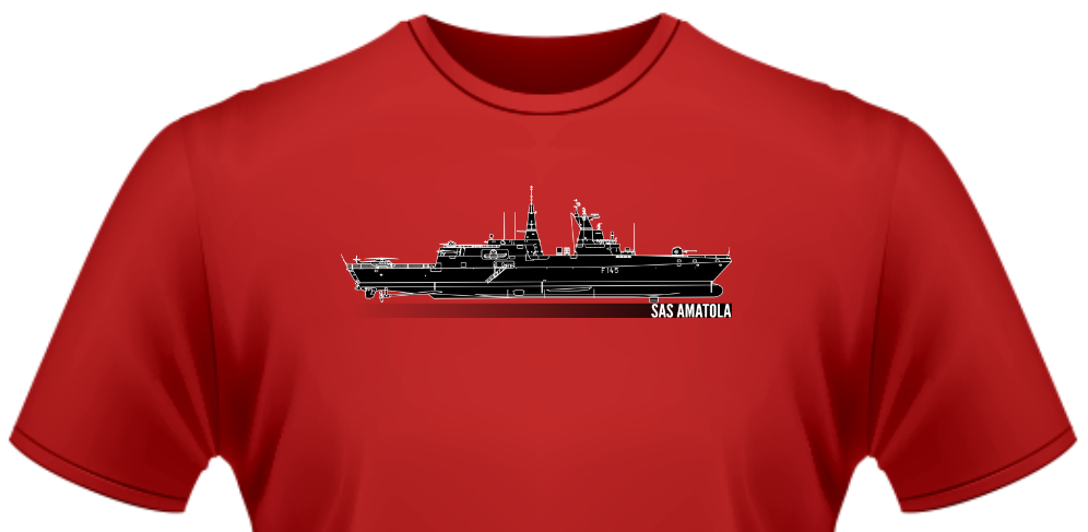 The iconic Amatola Valour-class frigate of the South African Navy! Available in a variety of colours and sizes, this easy-going 100% cotton T-shirt is built for style and all-day comfort. Designed and printed in good old ZA.